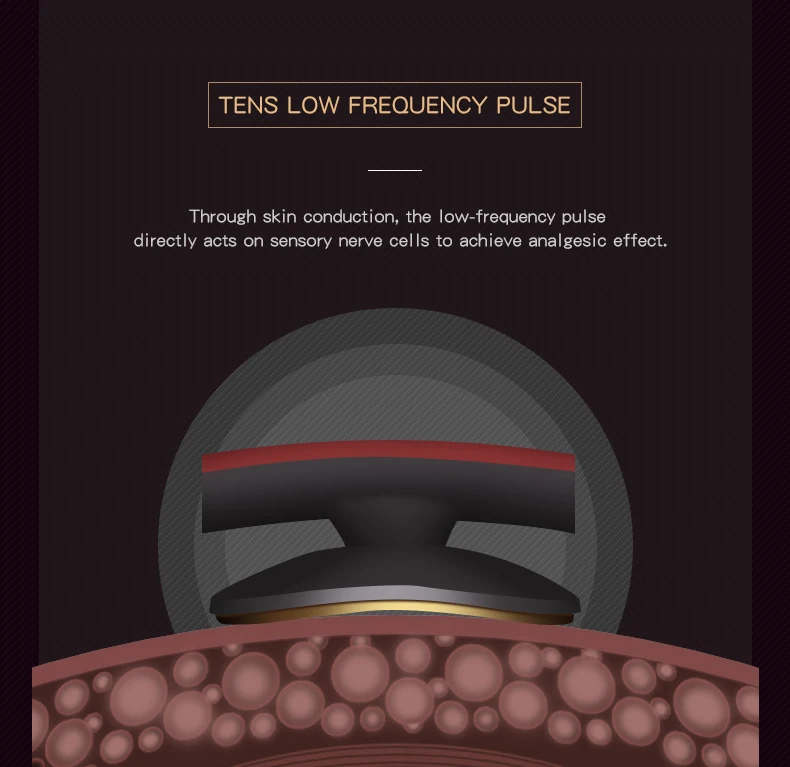 2. TENS LOW FREQUENCY PULSE Through skin conduction, the low-frequency pulse directly acts sensory nerves cells to achieve analgesic effect.