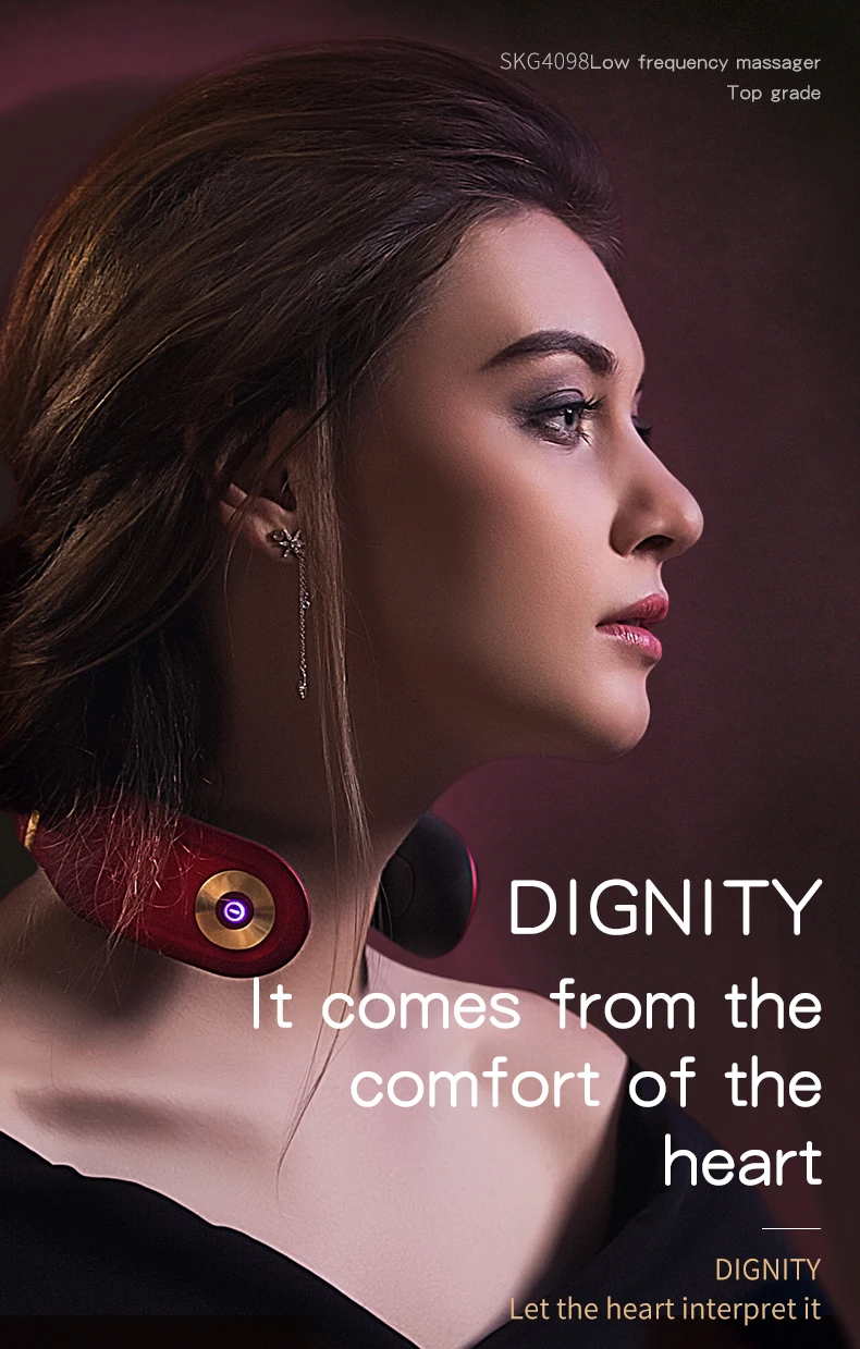 4. U-SHAPED ERGONOMIC DESIGN The design of 3D floating electrode pads, elastic arms, and silicone gripping arm surfaces allows the electrode pads to closely fit the neck skin during the use of the product, reducing needle-like discomfort caused by poor fit.